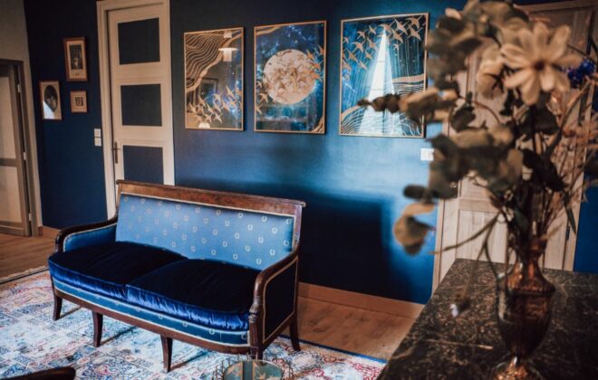 Entrez, avancez-vous et voyez toutes les nuances de bleu profond, une tonalité impériale. Oui, plongez dans un univers empreint d’une élégance rare où se mêlent notes poétiques et aériennes, à l’image du triptyque des oiseaux dorés, clin d’œil à la passion de Joséphine et surtout magnifique allégorie proposée par nos propriétaires pour célébrer l’amour de Napoléon pour sa bien-aimée Joséphine.