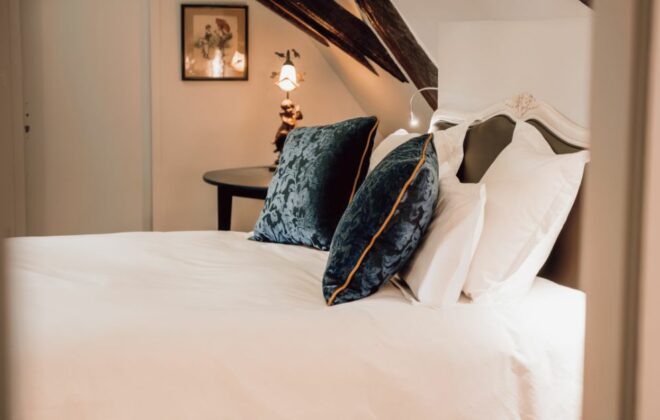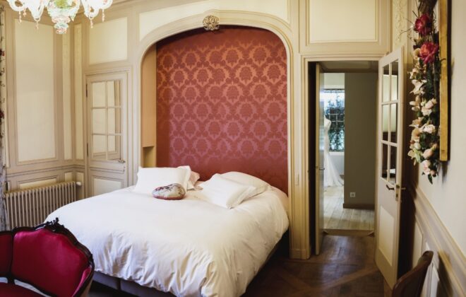 Située au rez-de-chaussée du château dans l’aile Ouest, la suite Plume est notre suite nuptiale. Spacieuse et romantique, cette magnifique suite dispose d’une belle chambre, d’un petit salon, et d’une très belle salle de bain avec baignoire et douche à l’italienne.