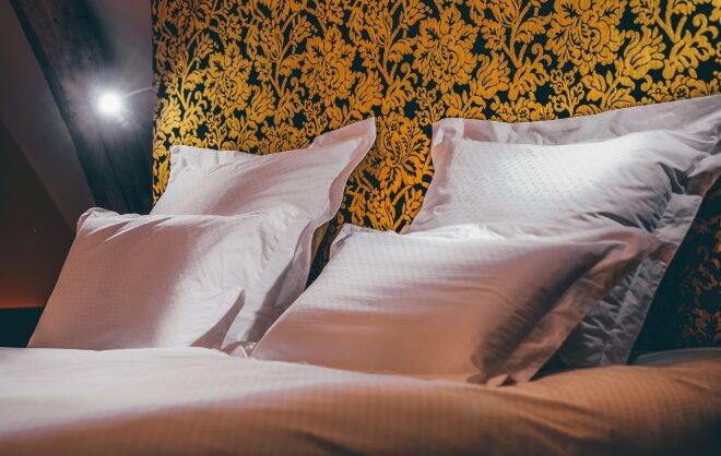 Située au 2e étage dans l’aile Est, accessible par un escalier, découvrez un décor pour le moins mystique. Bienvenue dans la chambre Lucie. Somptueuse, énigmatique, elle joue habilement sur les contrastes de jaune et de noir avec beaucoup d’extravagance.