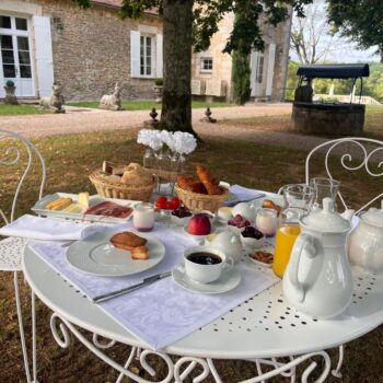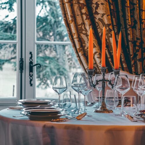 Lors de la réservation, nous échangerons pour orienter le repas qui vous sera servi. Nous composons le menu selon vos goûts (viande rouge, blanche, poisson, vegan ou sans gluten…) et à partir d’une sélection de produits locaux (fermes, marché, jardin-potager du Château).
