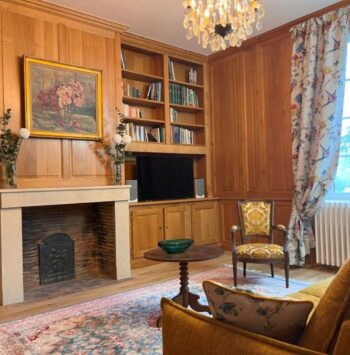 Située au premier étage dans l’aile Ouest, accessible par un escalier, la suite Apolline est la plus grande suite du château. Cette magnifique suite dispose d’une chambre aux très agréables volumes, un petit salon bibliothèque avec canapé convertible en 160 cm, et d’une très belle et spacieuse salle de bain avec une somptueuse baignoire, méridienne et douche à l’italienne.